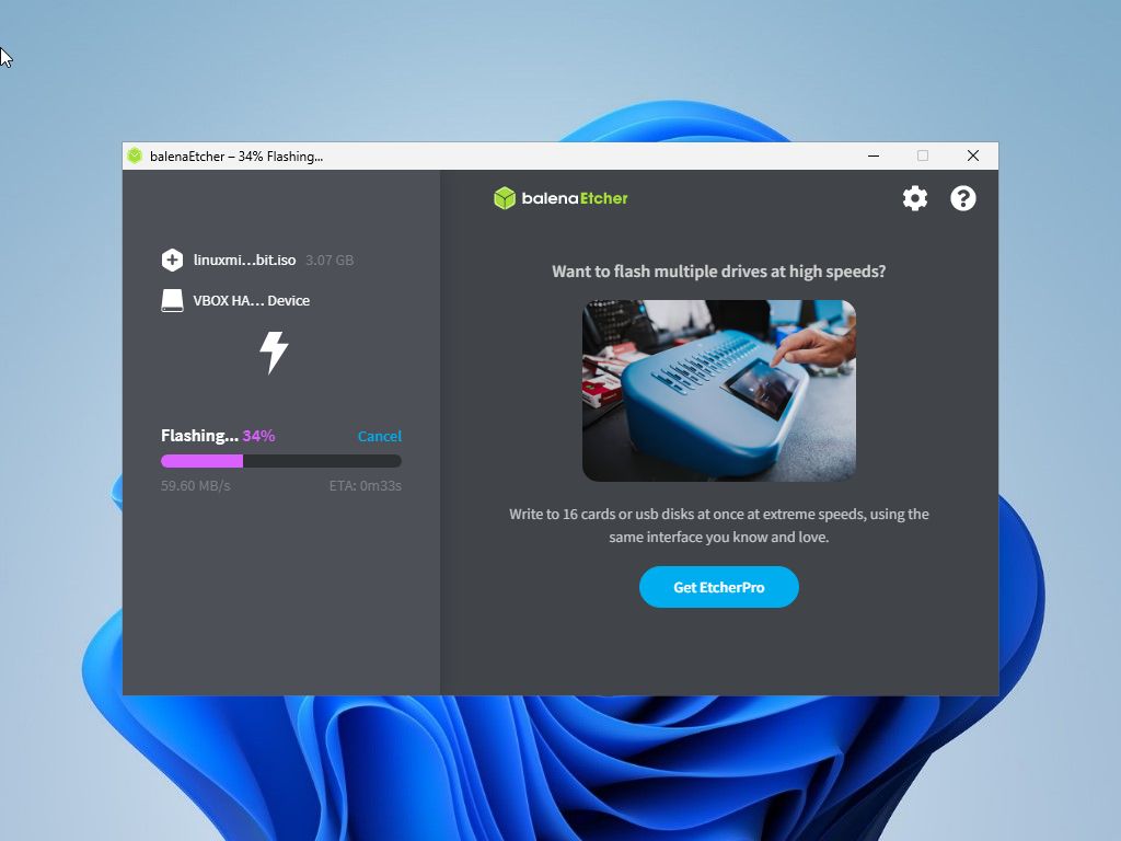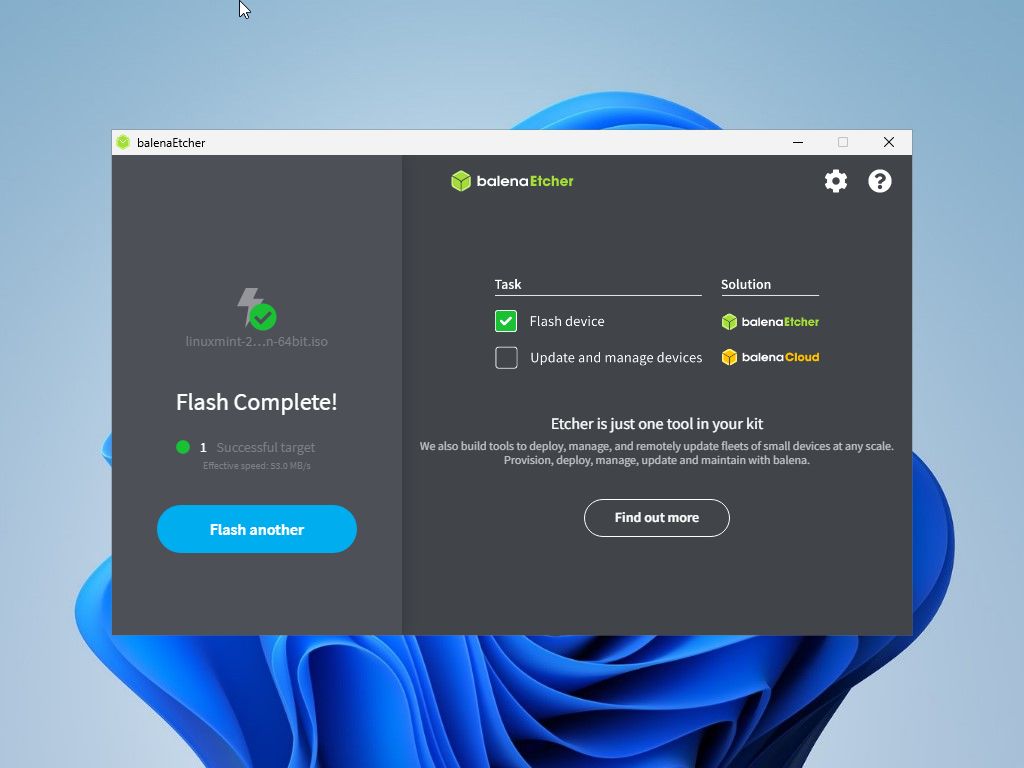 balenaEtcher je malý multi-platformní (Windows, Linux, MACOS) program určený pro vytváření bootovatelných USB médií z obrazů.