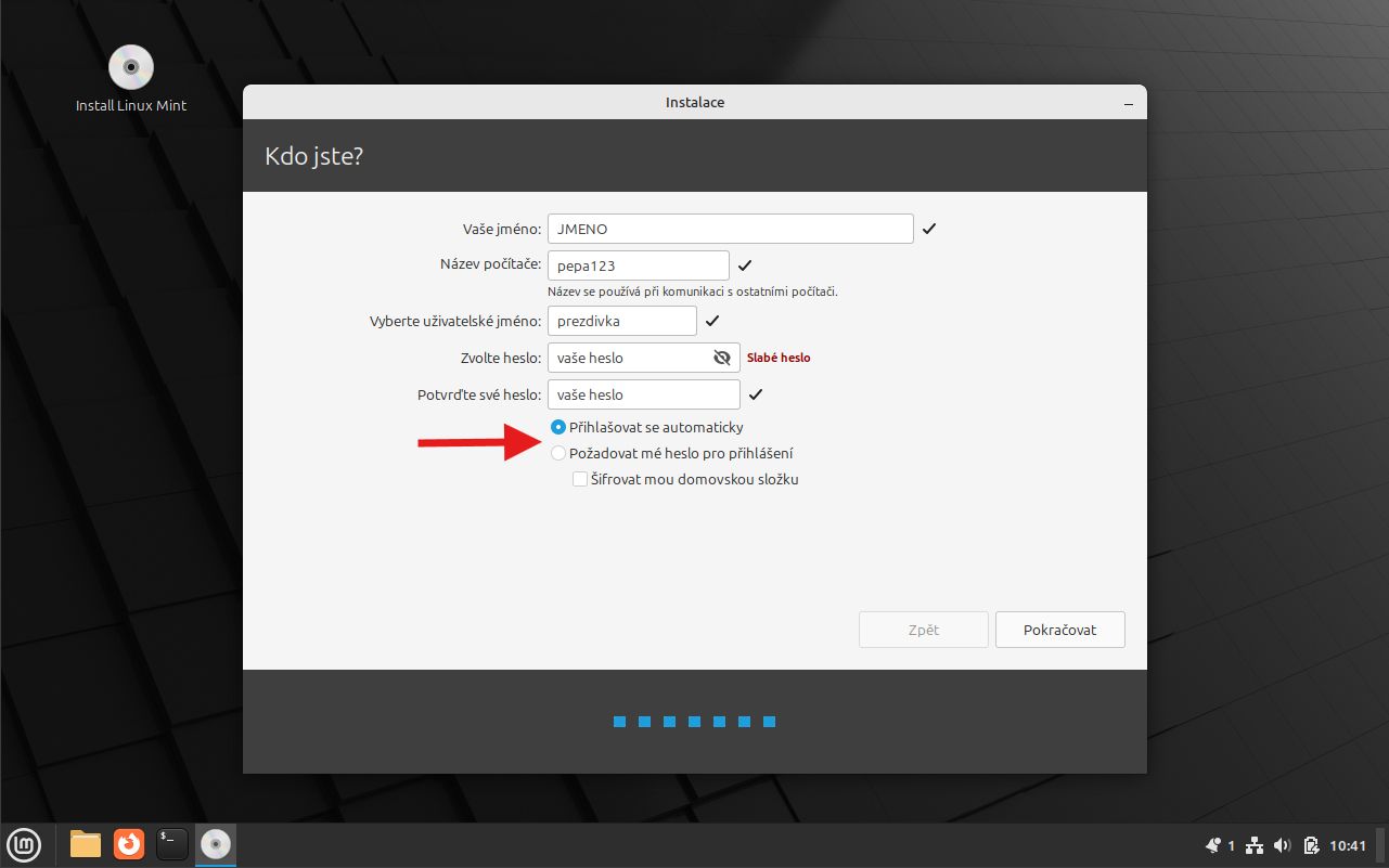 Vytvoříme uživatele a v případě potřeby nastavíme automatické přihlášení na plochu bez nutnosti zadání hesla.