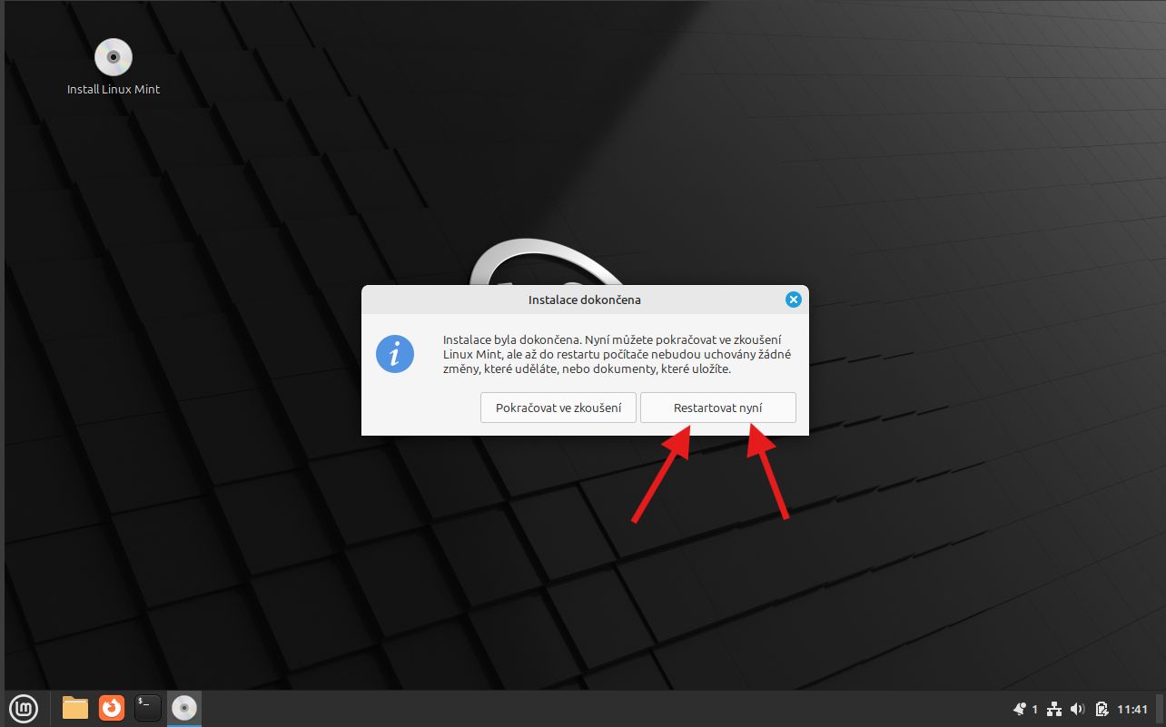 Po dokončení instalace počítač restartujeme a odpojíme flash disk.