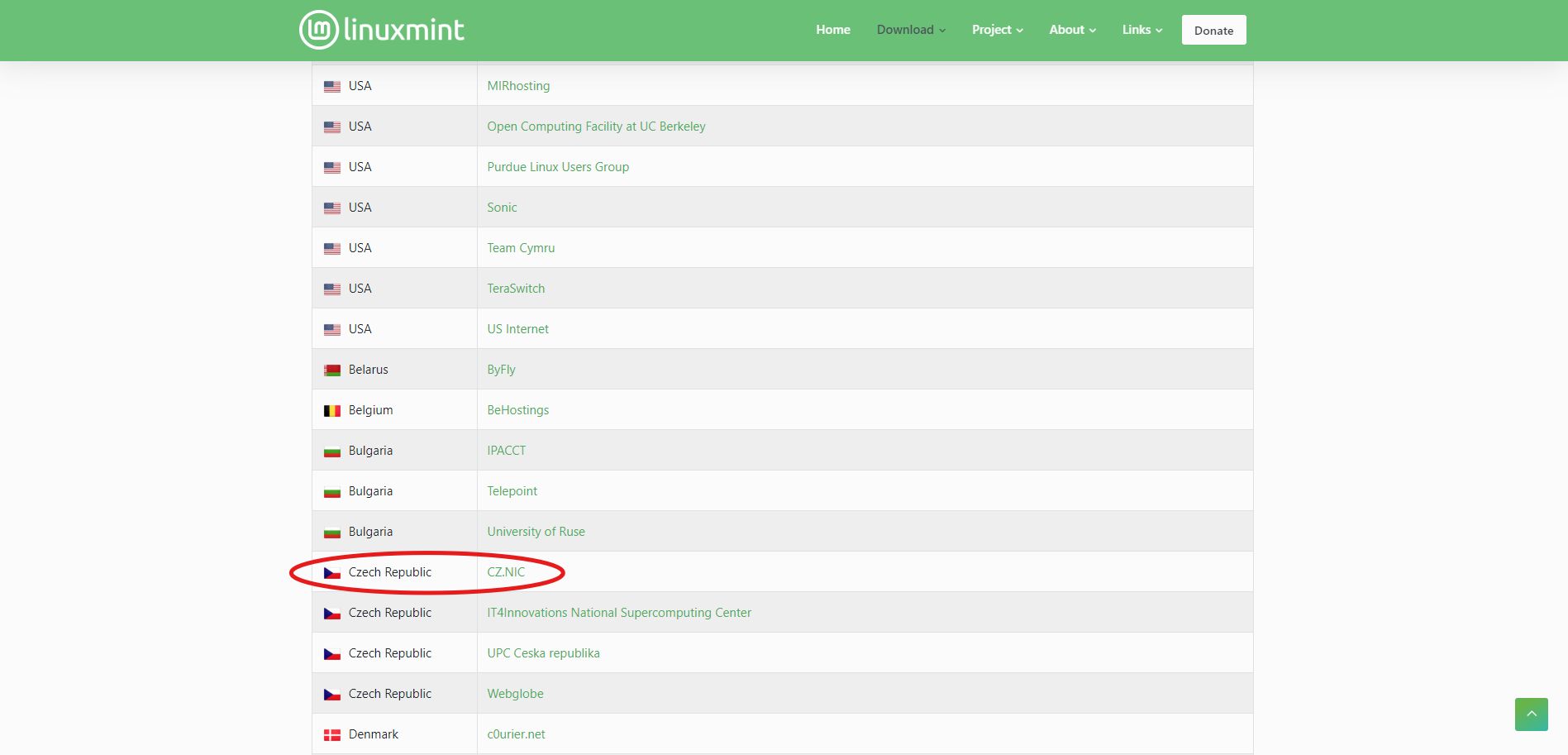 V této části stránky sjedeme níže v Download mirrors na řádky Czech Republic, vybereme libovolný odkaz a bude zahájeno stahovaní ISO souboru.
