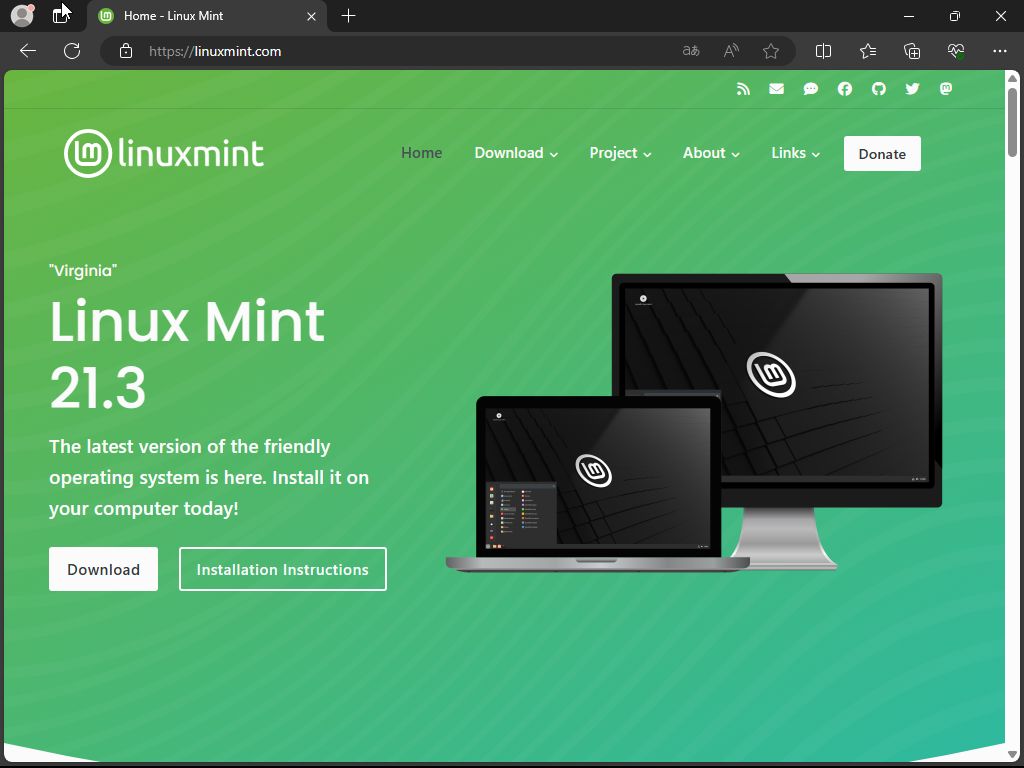 Otevřeme si stránky Linux Mint a klikneme na tlačítko Download.