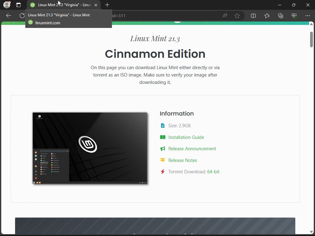 Vybereme edici Cinnamon Edition a opět klikneme na tlačítko Download.