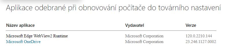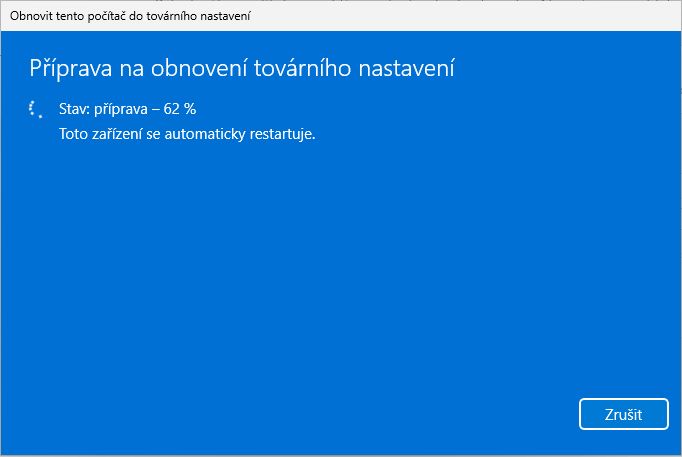 Výsledkem tohoto testu, je potvrzení známé reality a to, že program Obnova počítače do továrního nastavení není:
