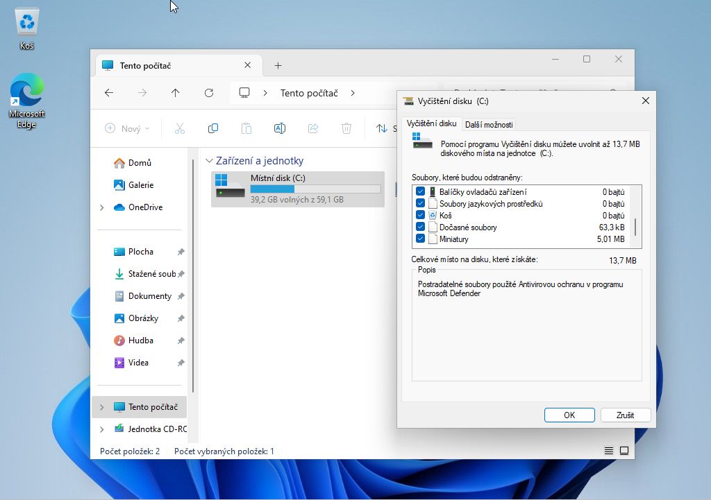 - Vyčištění disku: 13.7 MB (zbytečné soubory po instalaci k odstranění)