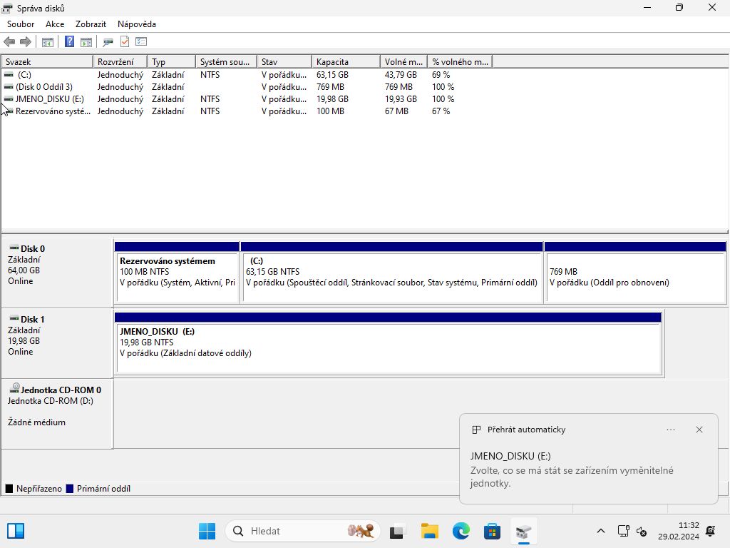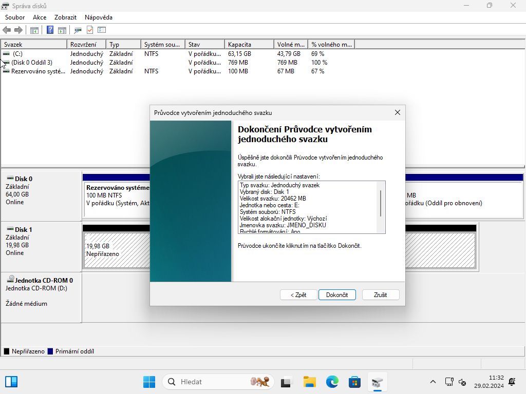 Po otevření správce disku vyskočí okno Inicializace disku, kde vybereme v typ oddílu: GPT a potvrdíme OK.