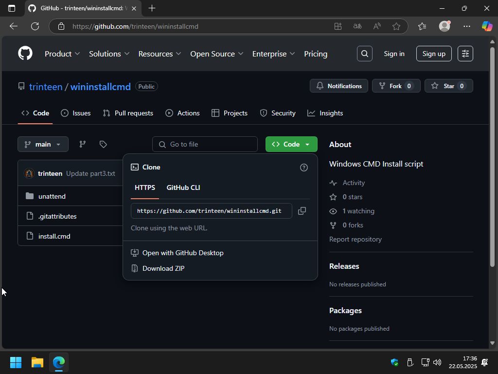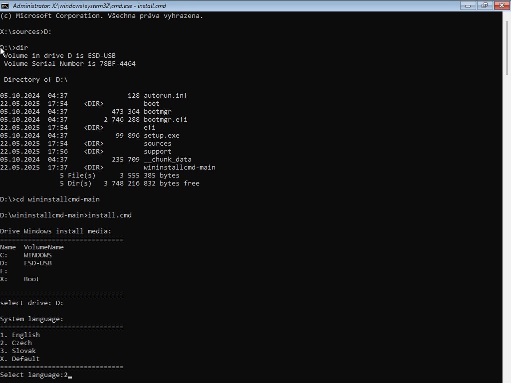 Flash disk nebo jiné médium s nahraným instalačním programem Windows a WinInstallCmd z Githubu.